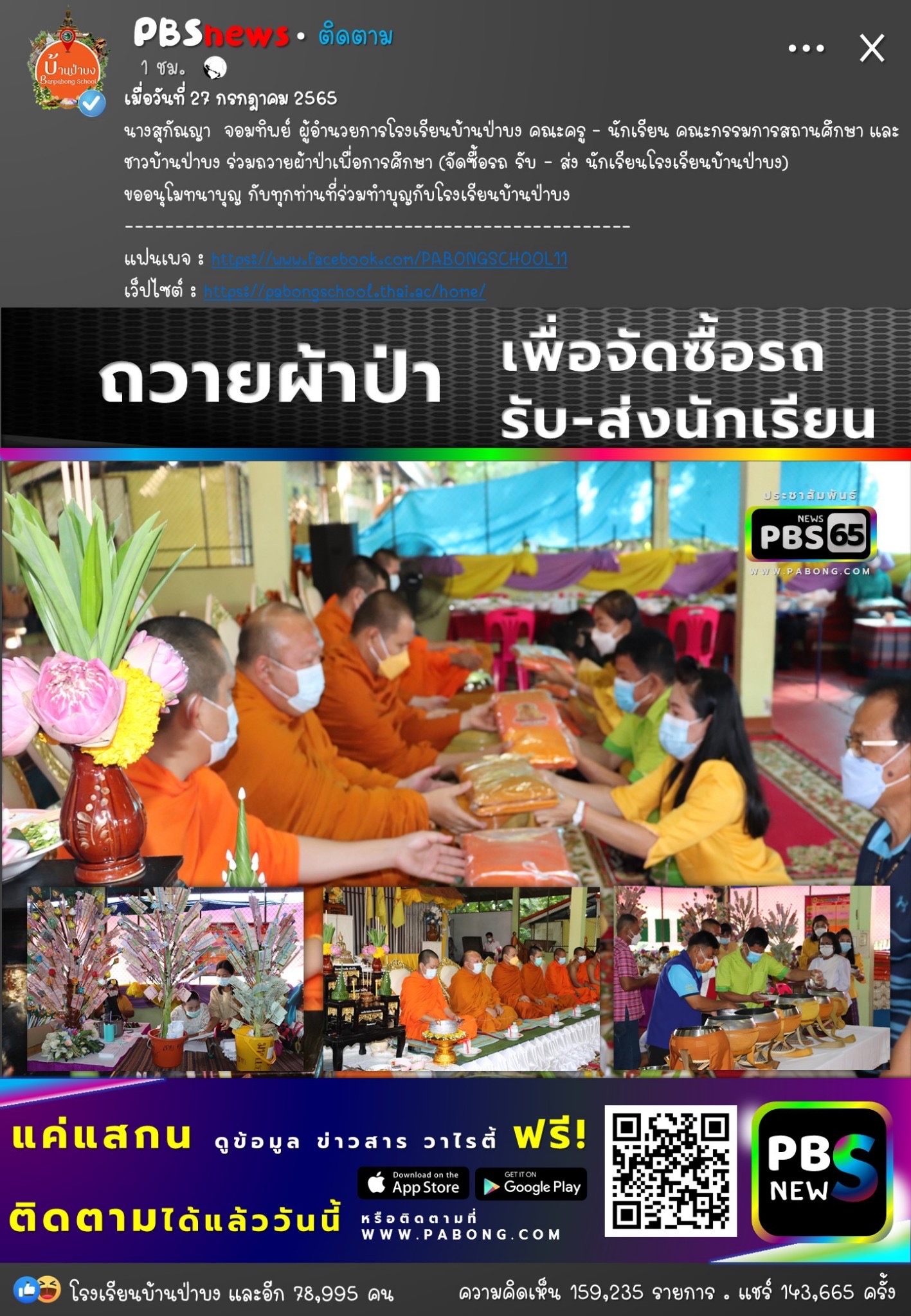 ถวายผ้าป่าเพื่อจัดซื้อรถรับส่งนักเรียน