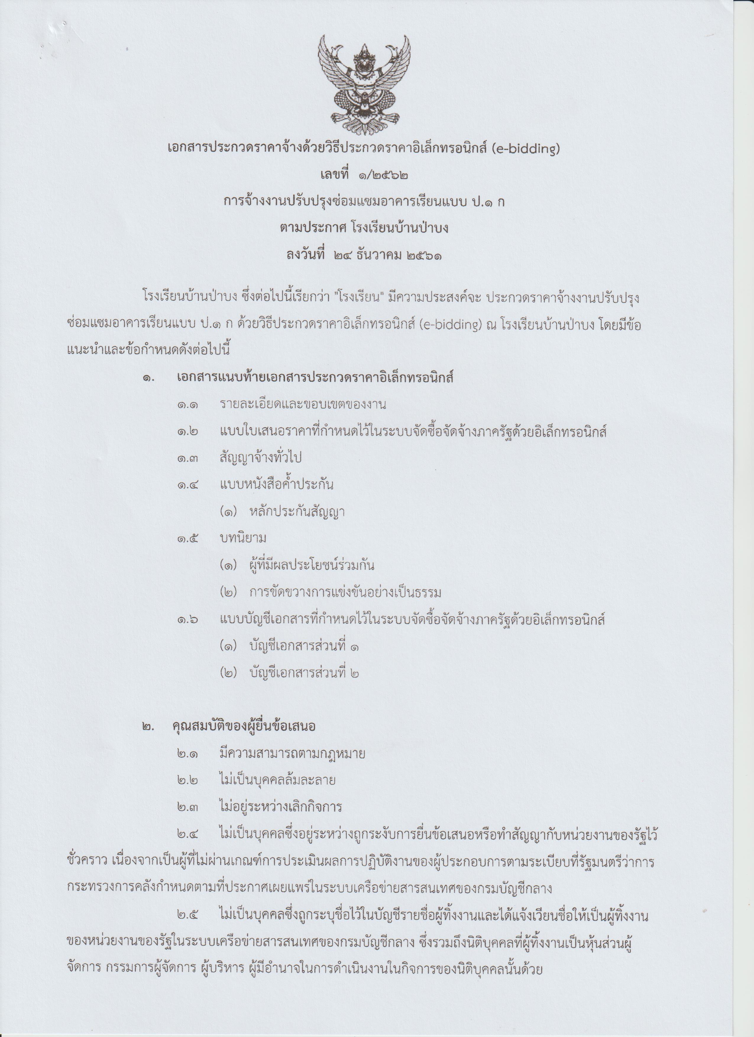 เอกสารประกวดราคาจ้างด้วยการประกวดราคาอิเล็กทรอนิกส์ (e-biding) เลขที่ 1/2562 (แผ่นที่ 1)